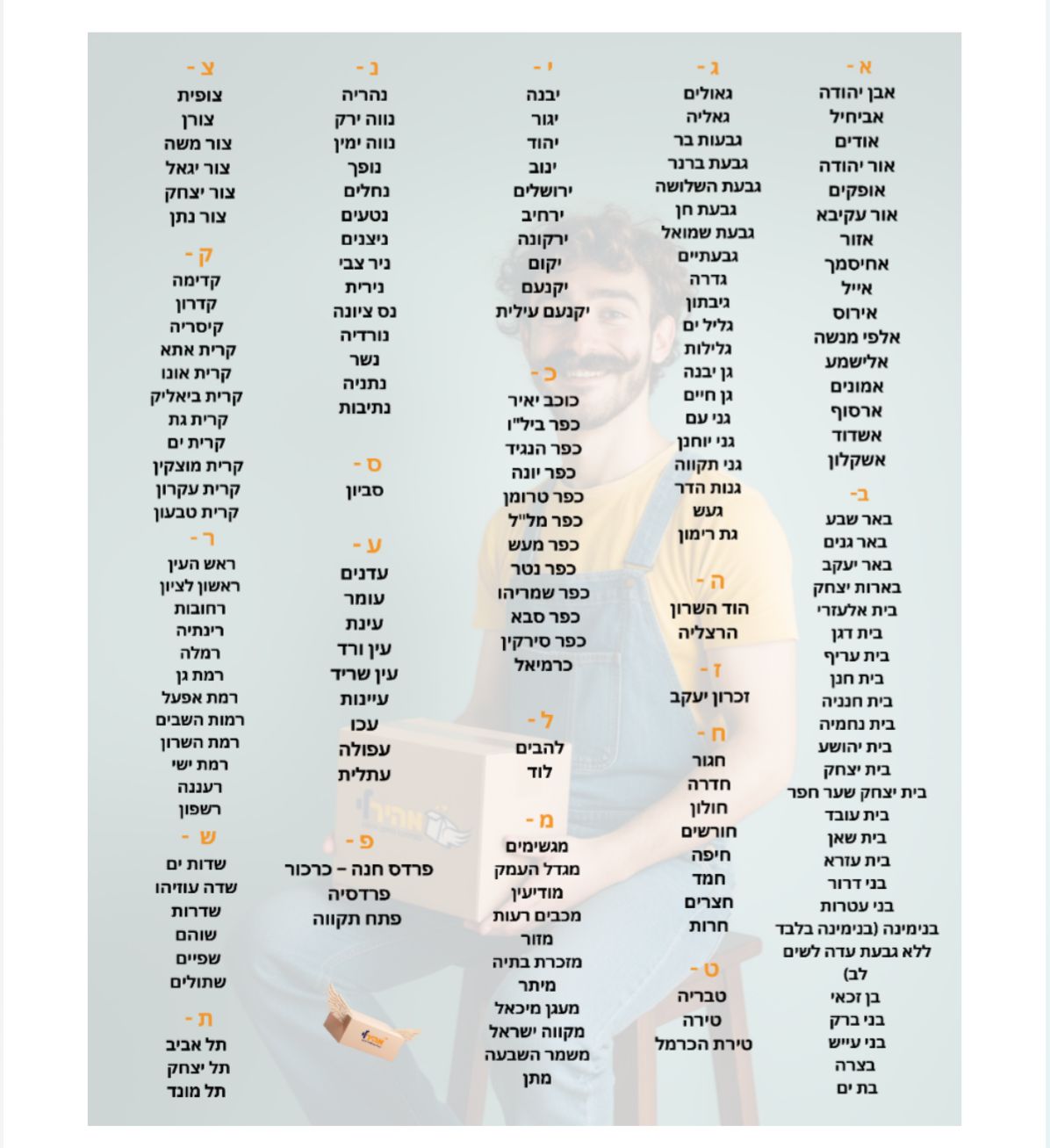 מהיום להיום: למזמינים עד 10:00. רשימת ערים. לא כולל שישי ושבת. 50 ₪.
