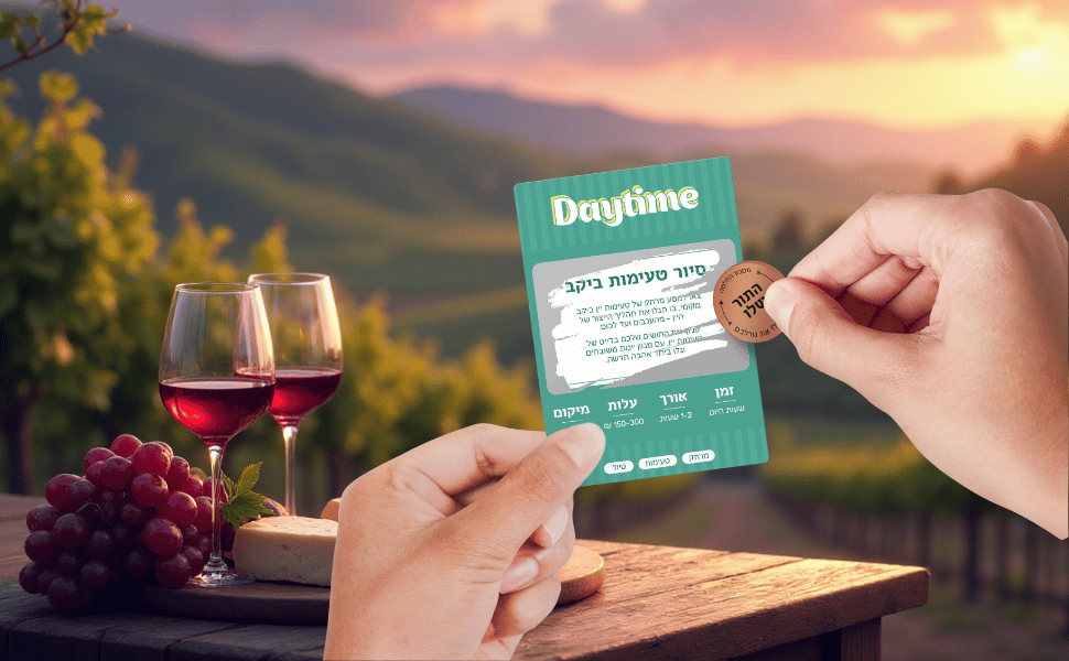 💡 הכרטיסים מחולקים לפי זמן מתאים (יום, לילה, או כל שעה), כוללים הערכת תקציב ואורך – כך שתוכלו להתאים את החוויה לאותו רגע בדיוק.